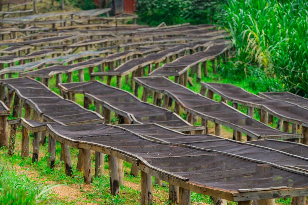 Kooperatifin rehberi bizi çocuklardan kopartıyor , tarlalara doğru ilerliyoruz. Önce kahve bitkisini tanıtıyor,küçüklüğünden gelişmişliğine kadar olan süreç anlatıyor,sonra meyvesine sıra geliyor. Ham halininin kırmızılığından etkileniyoruz,olgunlaştıkça siyaha dönüştüğünü daha erken meyve vermiş ağaçların uç dallarında gözlemliyoruz. Hasat bu aşamada yapılıyor. Kahve toplandıktan sonra, su dolu havuzlarda yüzdürülüyor, meyveyi saran zarın çıkması,içi boş meyvelerin ayıklanması ve hastalıklı tanelerin uzaklaştırılabilmesi böyle sağlanıyor. Ağır taneler ve A sınıfı meyveler ayrı bir fermantasyon tankına gönderiliyor ve onlar da aralarında kalite açısından derecelendiriliyor. Bunların dışında kalan taneler B ve C sınıfı kahveler olarak ikinci bir kırıcıya ve düşük ısıda başka bir fermantasyon tankına gönderiliyor. Ayrılan kahve çekirdekleri kurutulmak üzere açık havada kurulmuş uzun tel ile kaplı masalara yayılıyor ve orada kurutuluyor. Kurutulmuş kahveler kavruluyor,ardından da öğütülüp,eleniyor. Bundan sonra geriye kalan sadece sıcak suyla karıştırıp içmek oluyor. Kahve’nin Ruandaya 1904 yılında alman misyonerler tarafından getirildiği sanılıyor. 1930 yıllarına gelindiğinde pek çok aile kahve tarımı yapar hale gelmiş. Her biri bir hektar veya biraz daha az büyüklükte, ortalama 500.000. kahve çiftliği olduğu hesaplanıyor. Toprağın uygunluğu,iklim ve daha teknik tarım yapılması nedeniyle Ruanda son yıllarda kahve kalitesi olarak Afrika ülkeleri arasında önemli bir yere sahip oluyor.